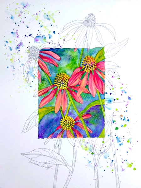 Purple Cone Flowers! Watercolor Painting Class, Friday, September 19th from 6:00pm til ? pm. Barbara will show you how to use masking fluid, ink under watercolor plus a few more handy techniques to use for a successful painting. Join along in a step by step class with individual attention, all the supplies you need are included. You must prepay to reserve a spot. You can pay in person at the Gallery, 471 N Lee St in LaBelle. Or just click the link below to prepay / register!