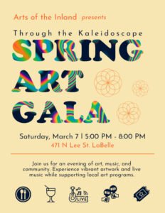 Receiving for The Kaleidoscope of Arts Show will be on Monday, March 2nd from 3-6pm!